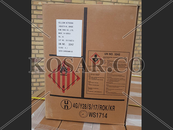 آزودی کربنامید در کارتن های 25 کیلوگرمی مقوایی موجدار با پوشش داخلی پلی اتیلن بسته بندی می شود. یکی از ویژگی های این ماده کف ساز، خاصیت چسبندگی آن است که این ویژگی در اثر رطوبت ایجاد نشده و در کیفیت آن نیز تأثیری نخواهد داشت.